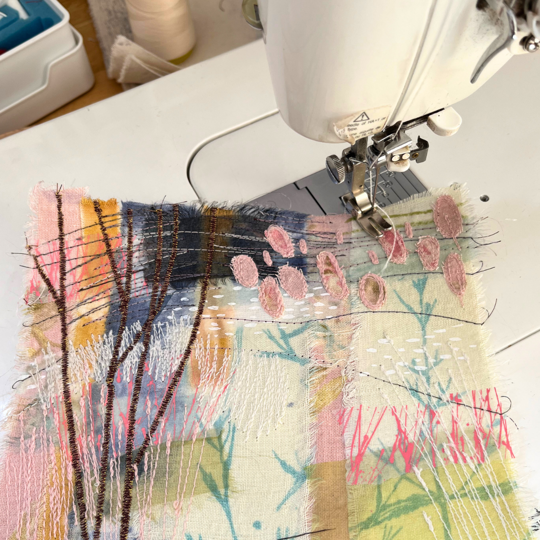 Together, we'll go through collaging, building fabric backgrounds and how to create any shape you like by combining appliqué and free-motion embroidery.
