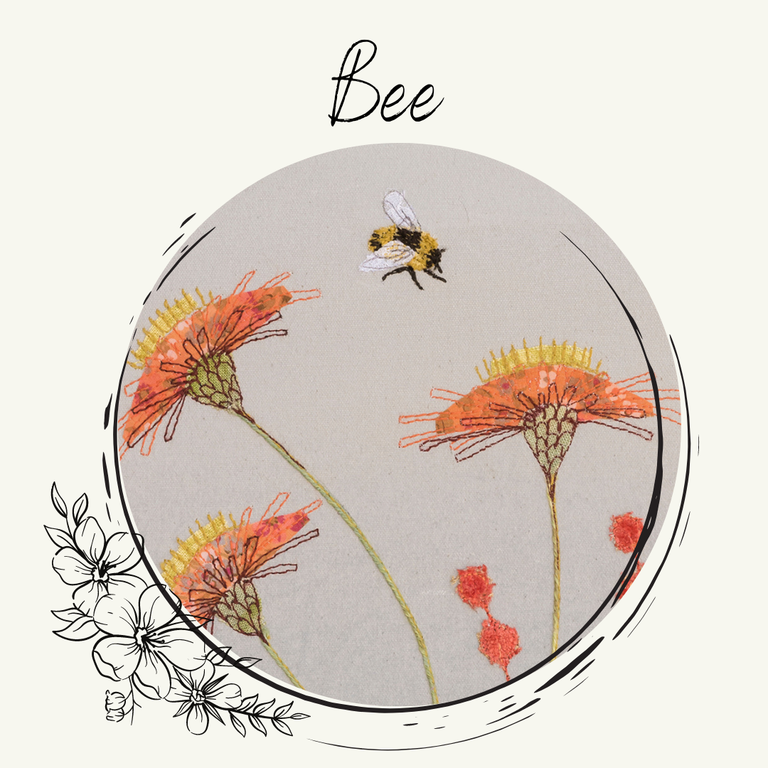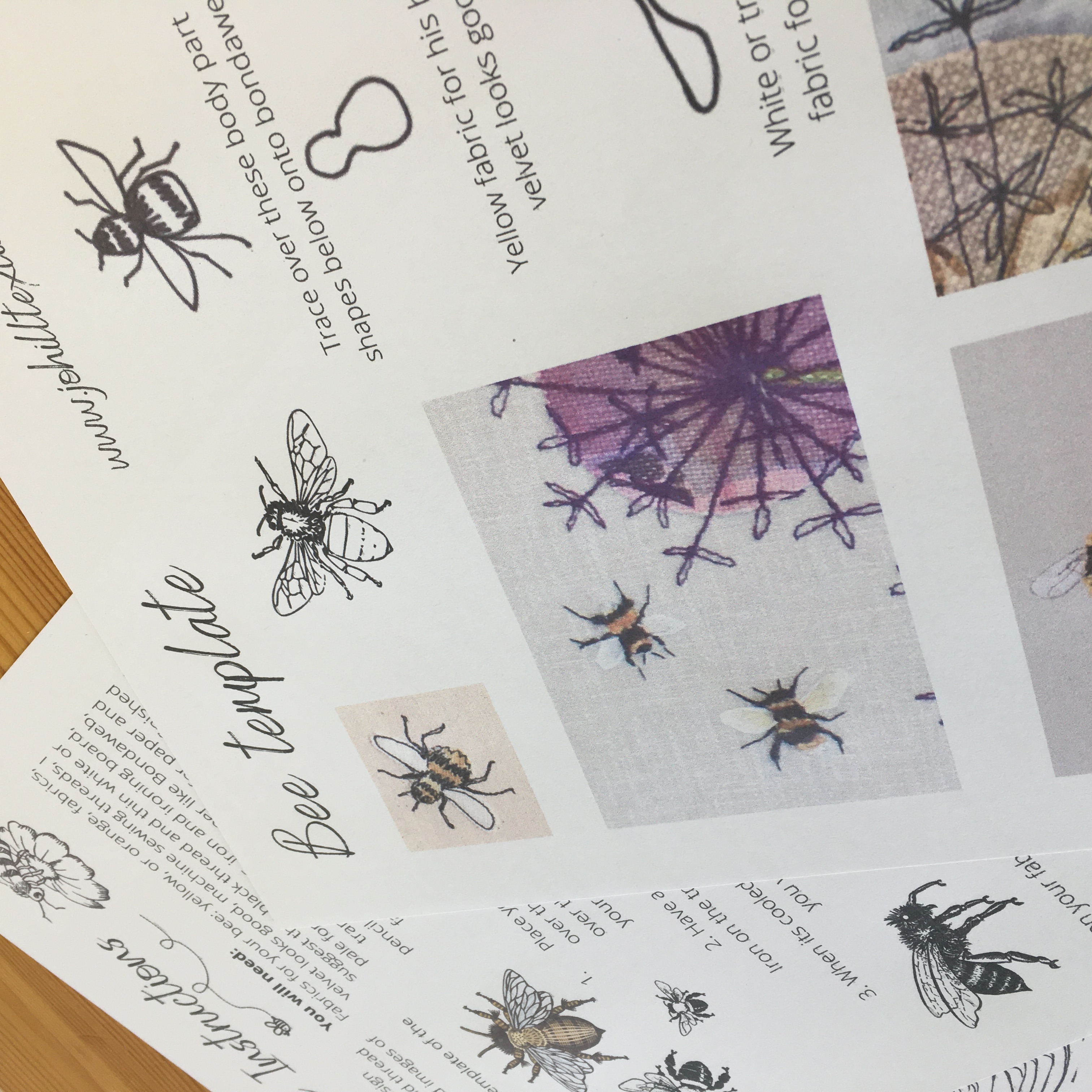 There are instructions and templates to trace also a video to watch on how to make your bee in fabric and thread and free motion embroidery.