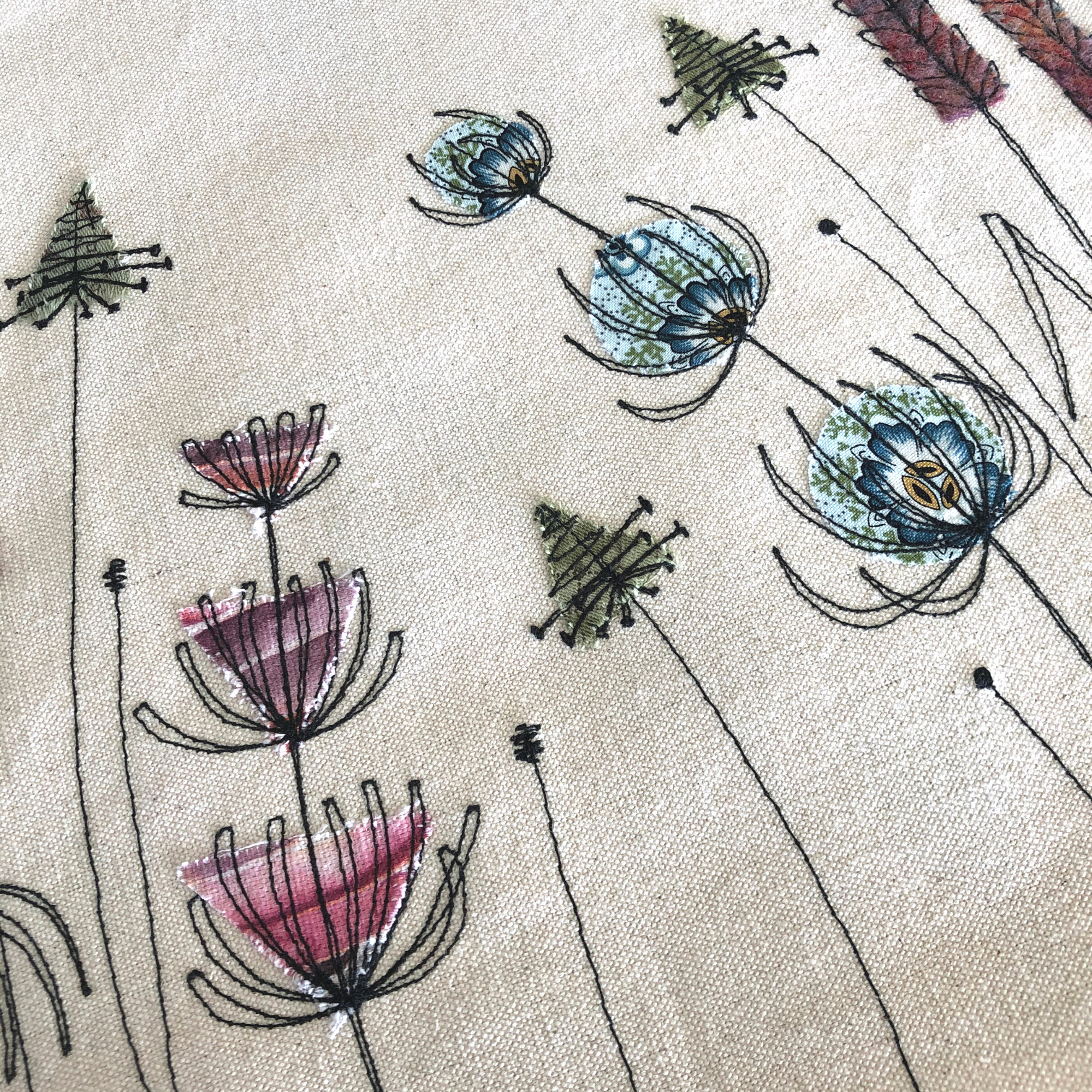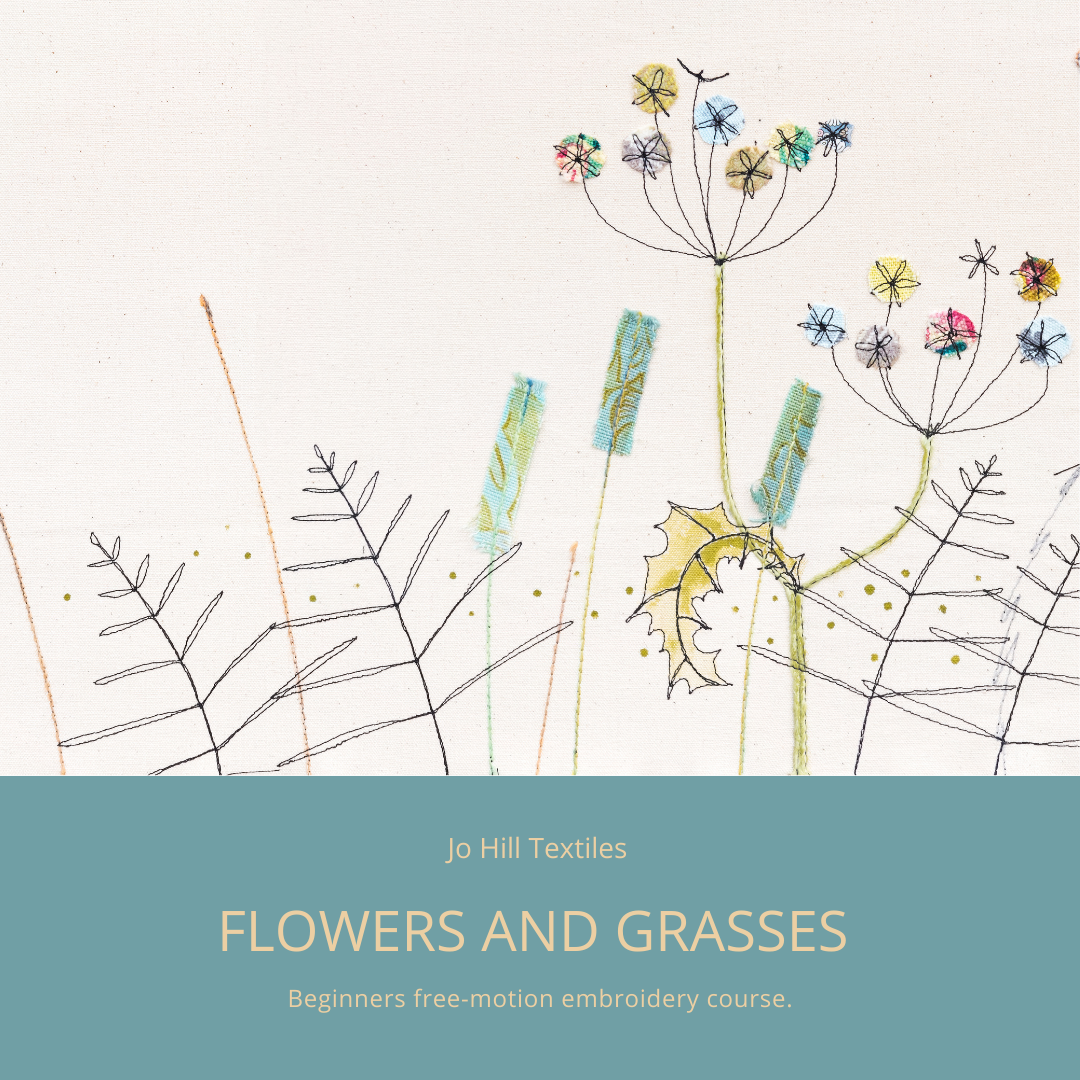 A beginners free-motion machine embroidery course, find your confidence in drawing with your sewing machine. I make learning easy with step by step videos of me stitching from a simple stem through to developing your own flowers and grasses. You will begin with the basics and end with a finished floral embroidery. On completion of this course you will have the skills to continue with any of my intermediate courses.