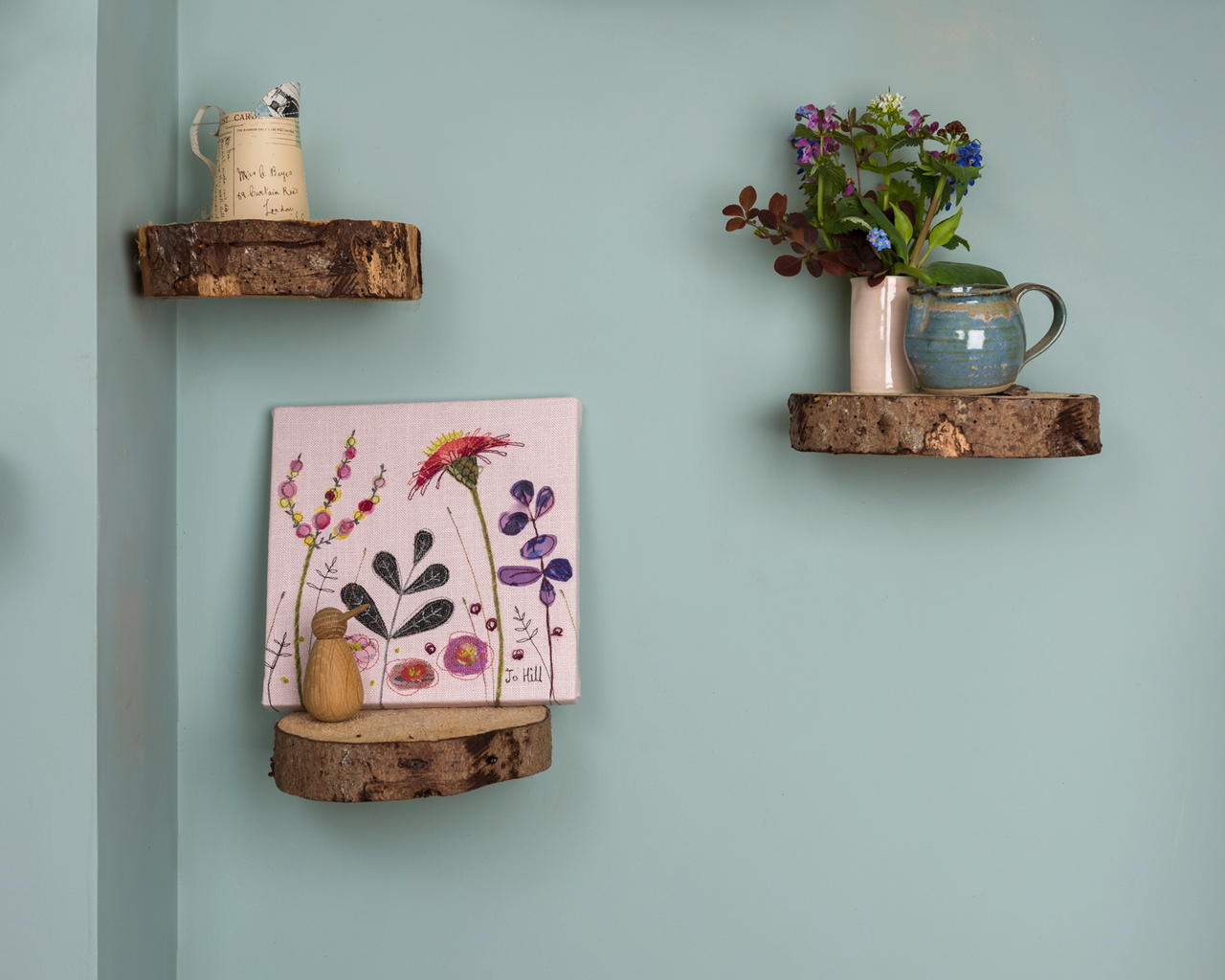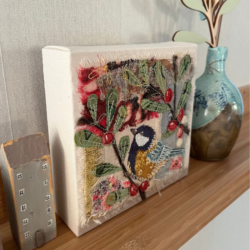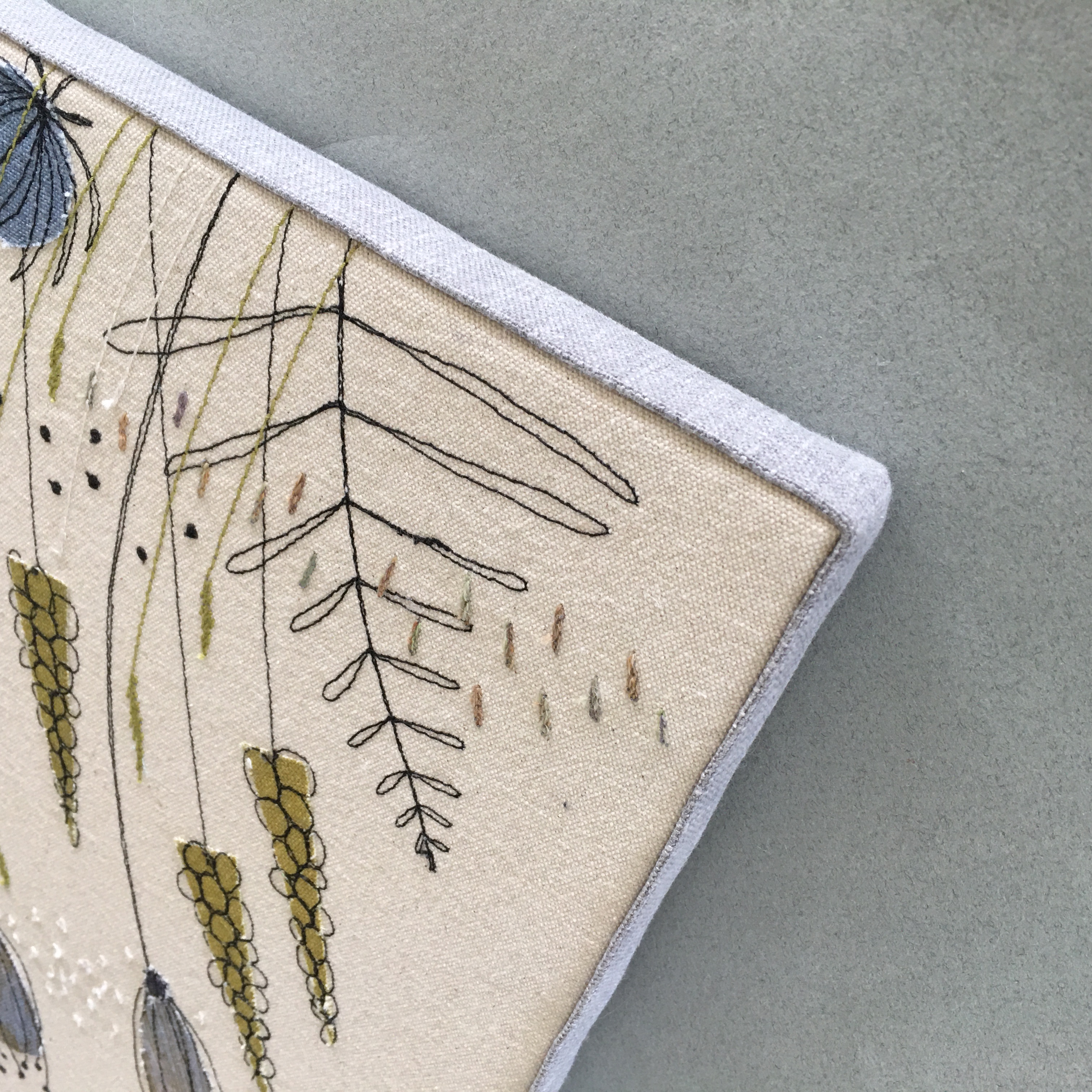 Backing fabric approximately 1 inch larger than your finished artwork. This will be visible on the back of your wall art, it gives a nice cushioning for your work if the fabric is fairly thick.