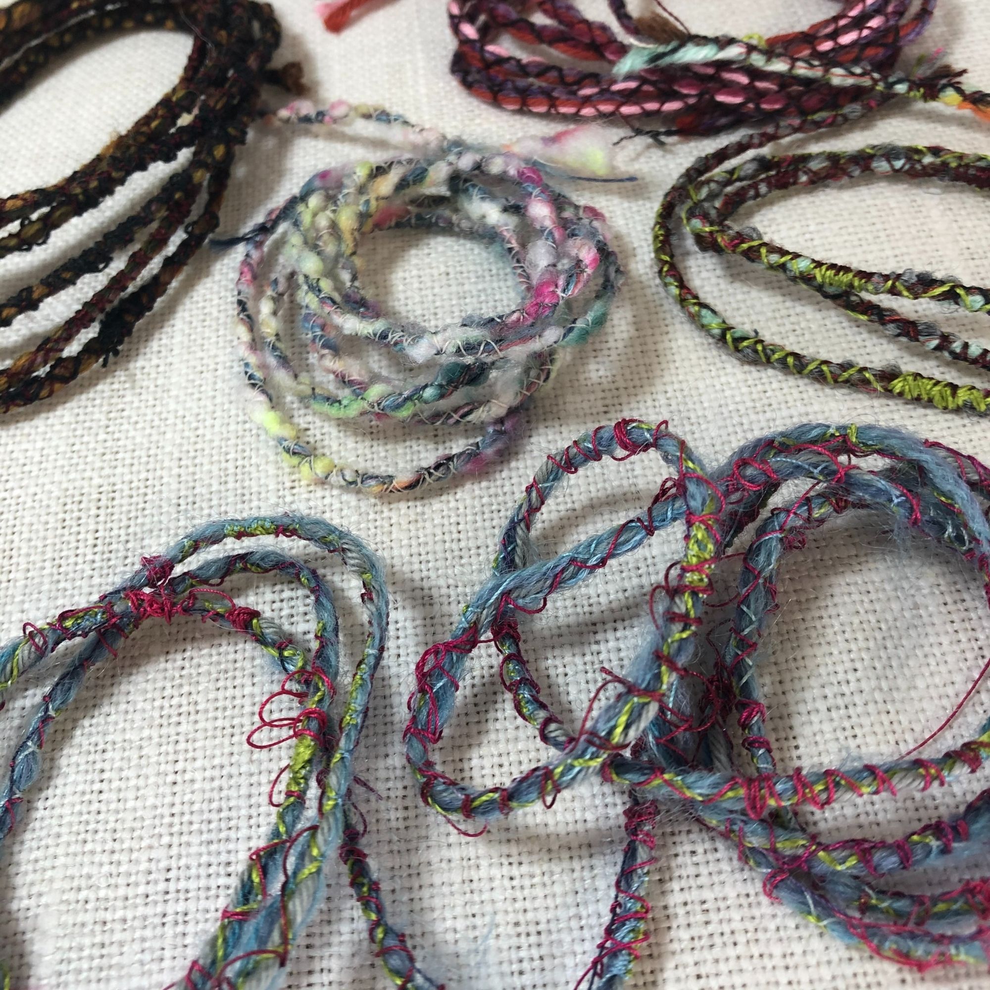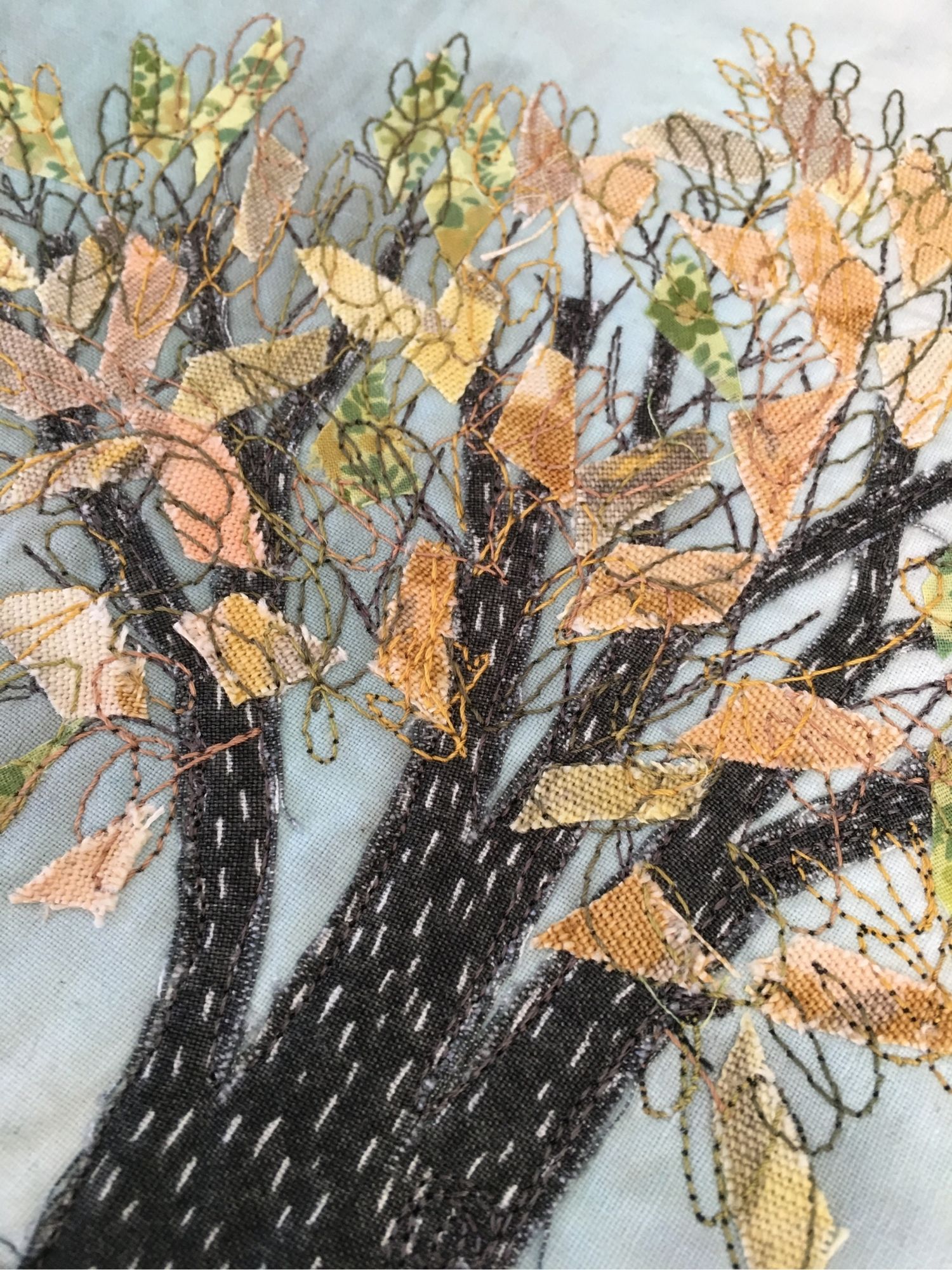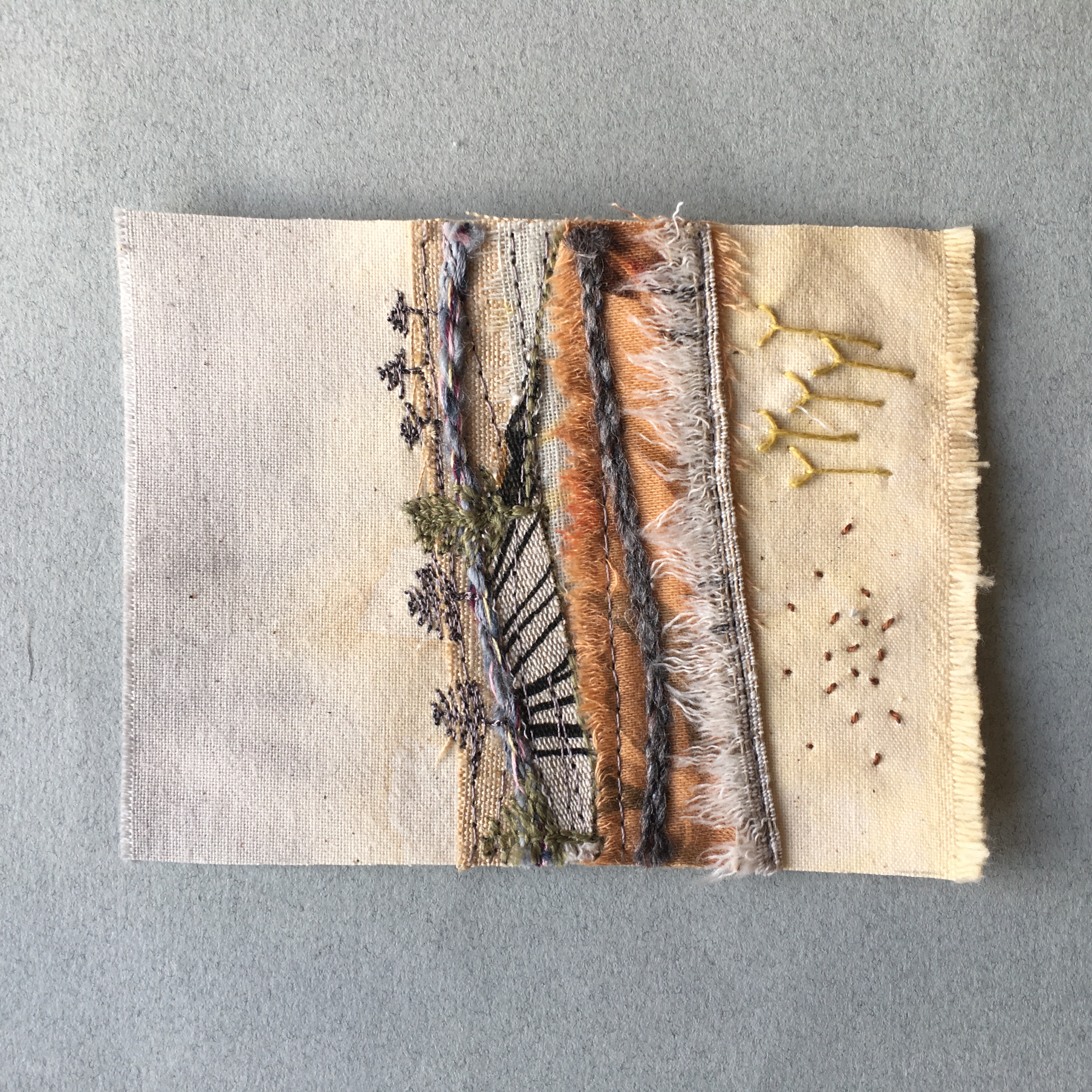 Rolling landscapes: we will celebrate our beautiful world in stitch. I will cover a variety of ways to lay down background fabrics, we will explore variations in couching down yarns and even creating your own yarns.