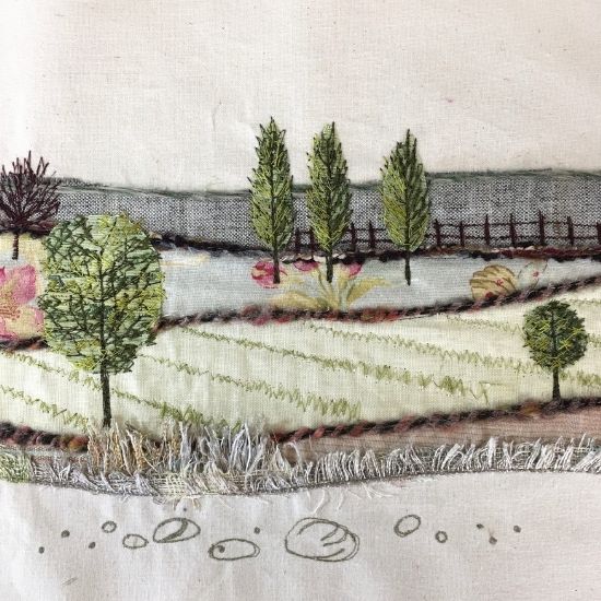 We will explore trees in straight stitch and also free motion in zigzag stitch too, trees both in the distance and closer. I will cover how to create depth in your work and basic perspective.